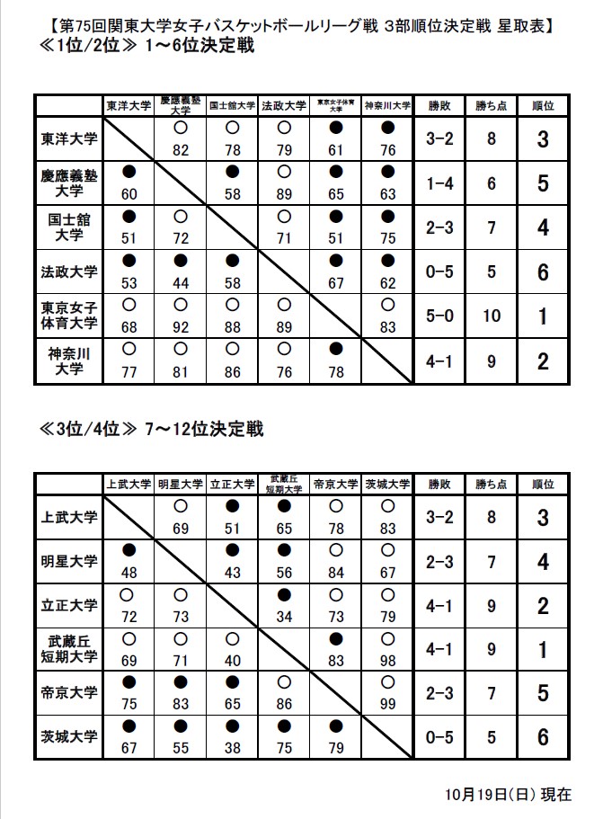 第75回関東大学女子バスケットボールリーグ戦の試合日程が発表されました。