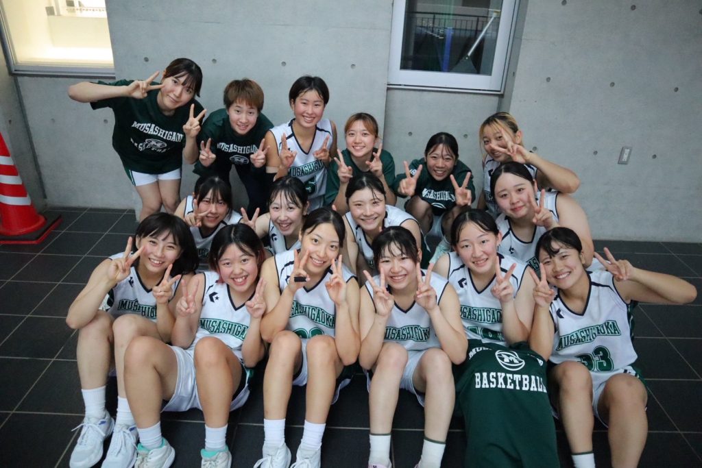 女子バスケットボール部です。リーグ第10戦は武蔵丘短期大学 71 対 56 明星大学で勝利しました。